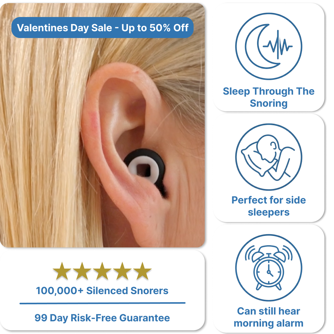 Slip in our ultra-soft Earship Sleep Plugs and transform your bedroom into a peaceful sanctuary. Our proprietary 26dB noise-reduction technology doesn't just muffle snoring—it virtually eliminates it while preserving important sounds like alarms.